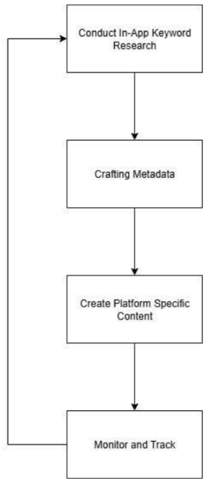 Now that the context has been set up, we explore a 4-step cycle to optimise your presence on each platform. The flowchart below illustrates this simplified process